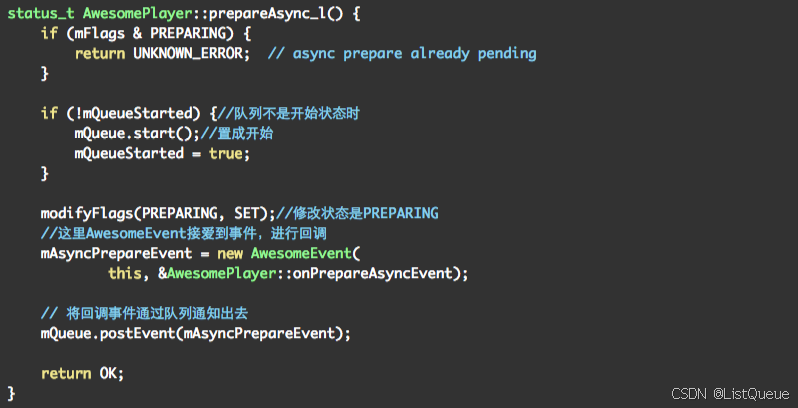 之后修改mFlags的状态为PREPARING,表示现在正在准备处理文件的音视频流。