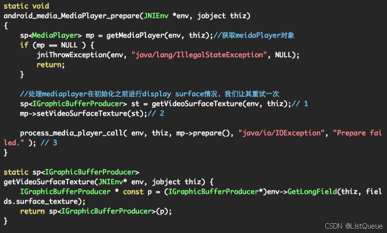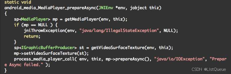 接着调用native层android_media_MediaPlayer_prepare方法: