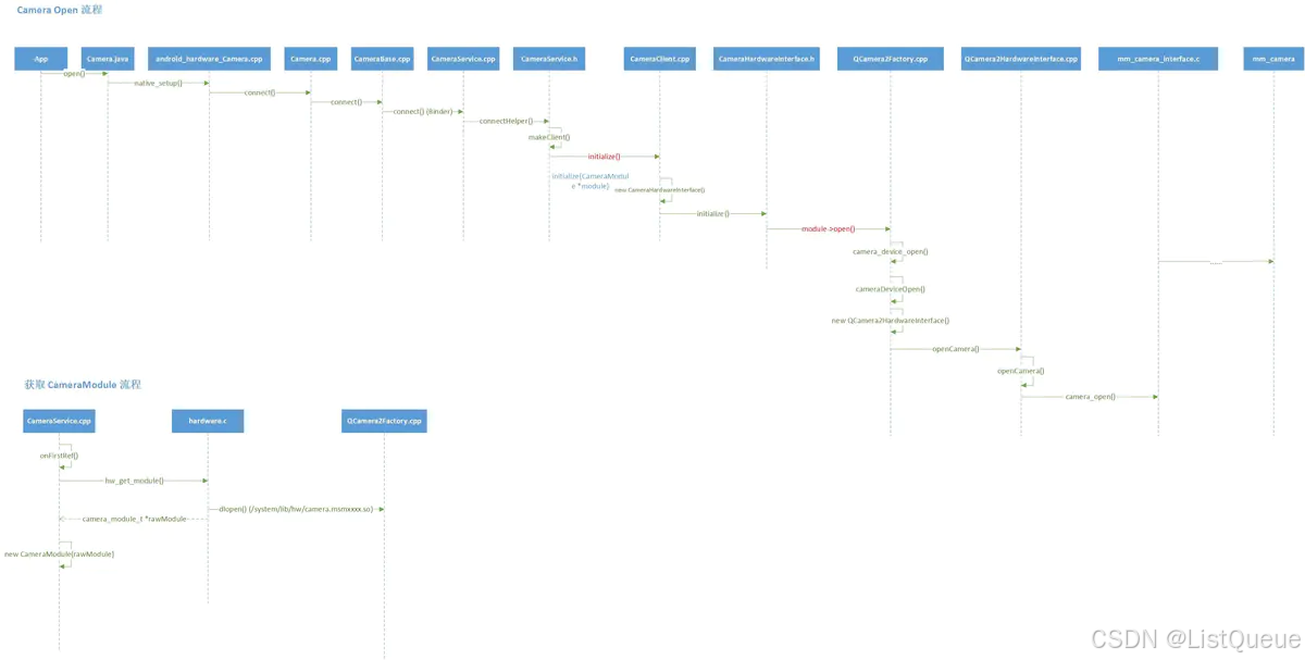注: 流程为Camera API1到HAL1, 代码以及路径都基于高通平台Android 7.1源码, API2到HAL3大体流程和HAL1相近, 但API方面差异很大, 来看下App从调用Camera.open()到HAL层的流程.