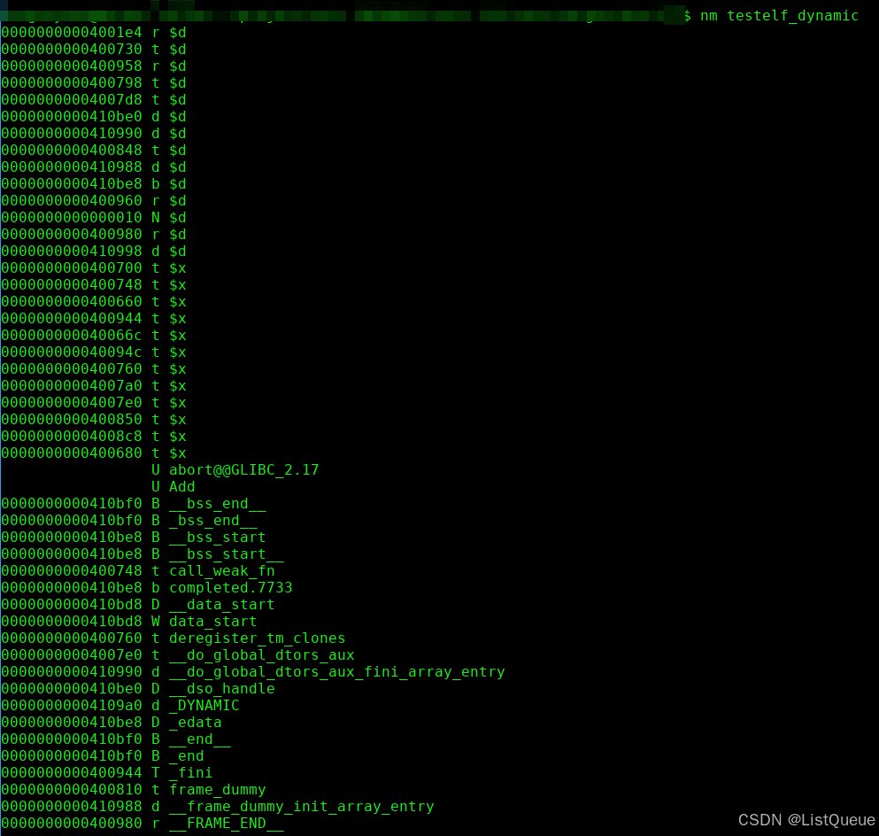 动态链接程序testelf_dynamic, 将add.o和sub.o先链接成动态链接库libtestelf.so, 然后再动态链接生成testelf_dynamic
