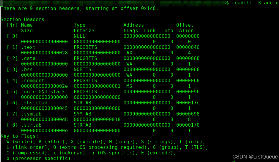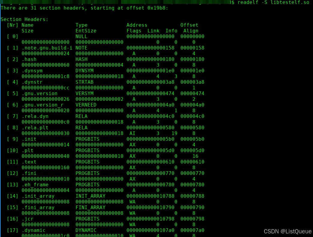字符串表节区包含以 NULL(ASCII 码 0)结尾的字符序列,通常称为字符串。ELF目标文件通常使用字符串来表示符号和节区名称。对字符串的引用通常以字符串在字符串表中的下标给出。