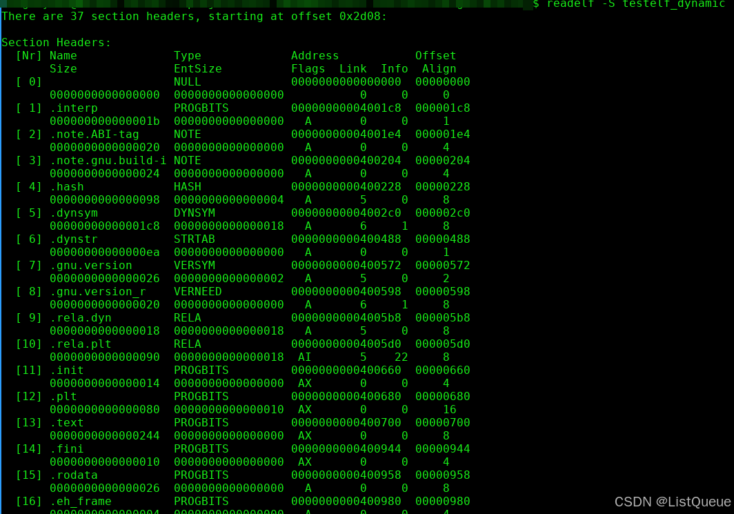| .text | SHT_PROGBITS | SHF_ALLOC + SHF_EXECINSTR | 此节区包含程序的可执行指令 |