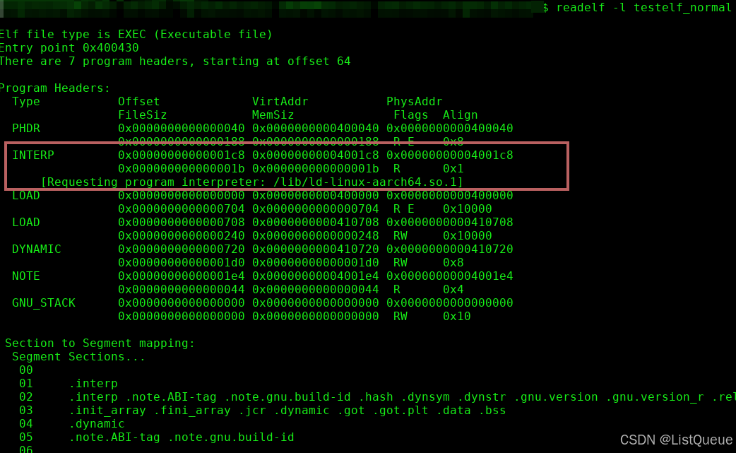 可以看到testelf_normal和testelf_dynamic都是动态链接的需要解释器,而testelf_static则是静态链接的不需要解释器。
