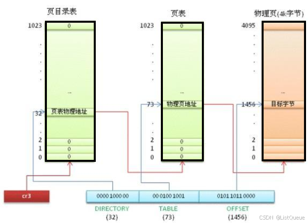 了解了以上结构之后,我们看看如何从线性地址转换到物理地址的:
