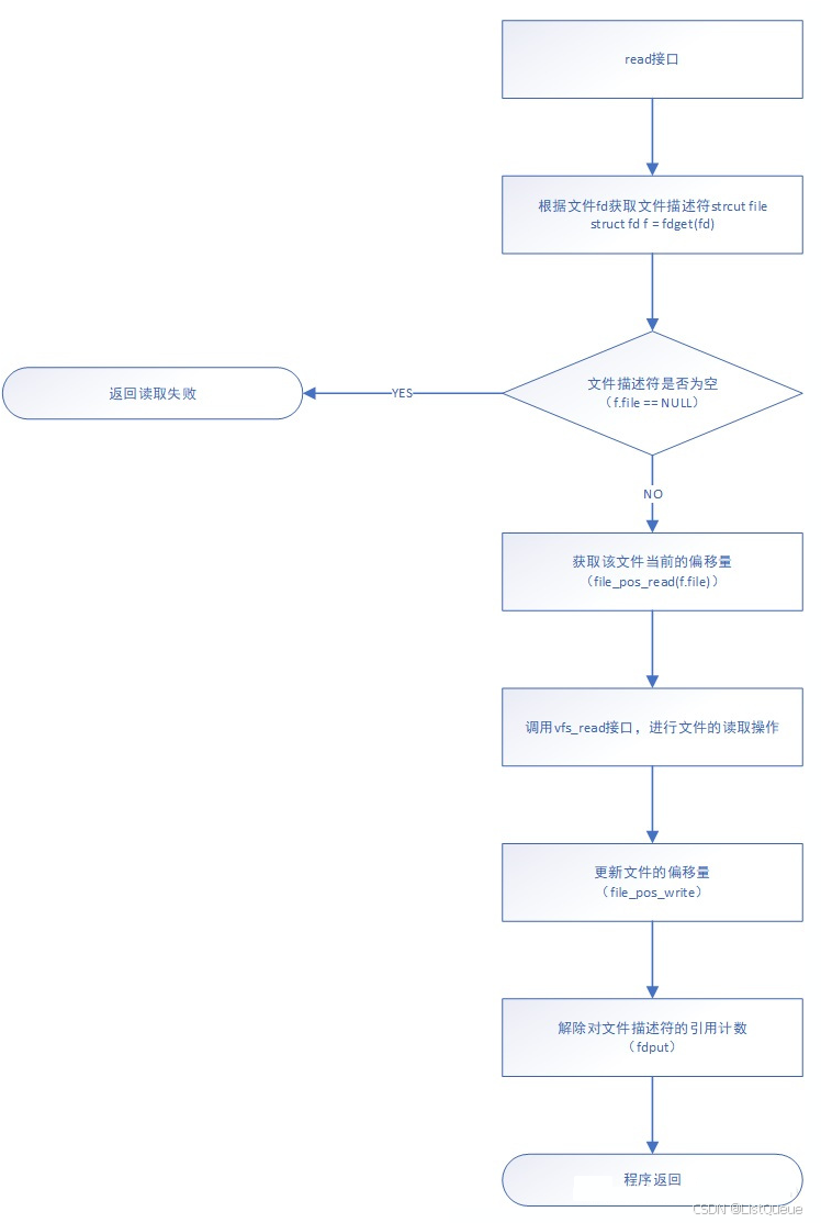 该接口的实现流程图如下所示,该流程图说明了read接口的实现逻辑。