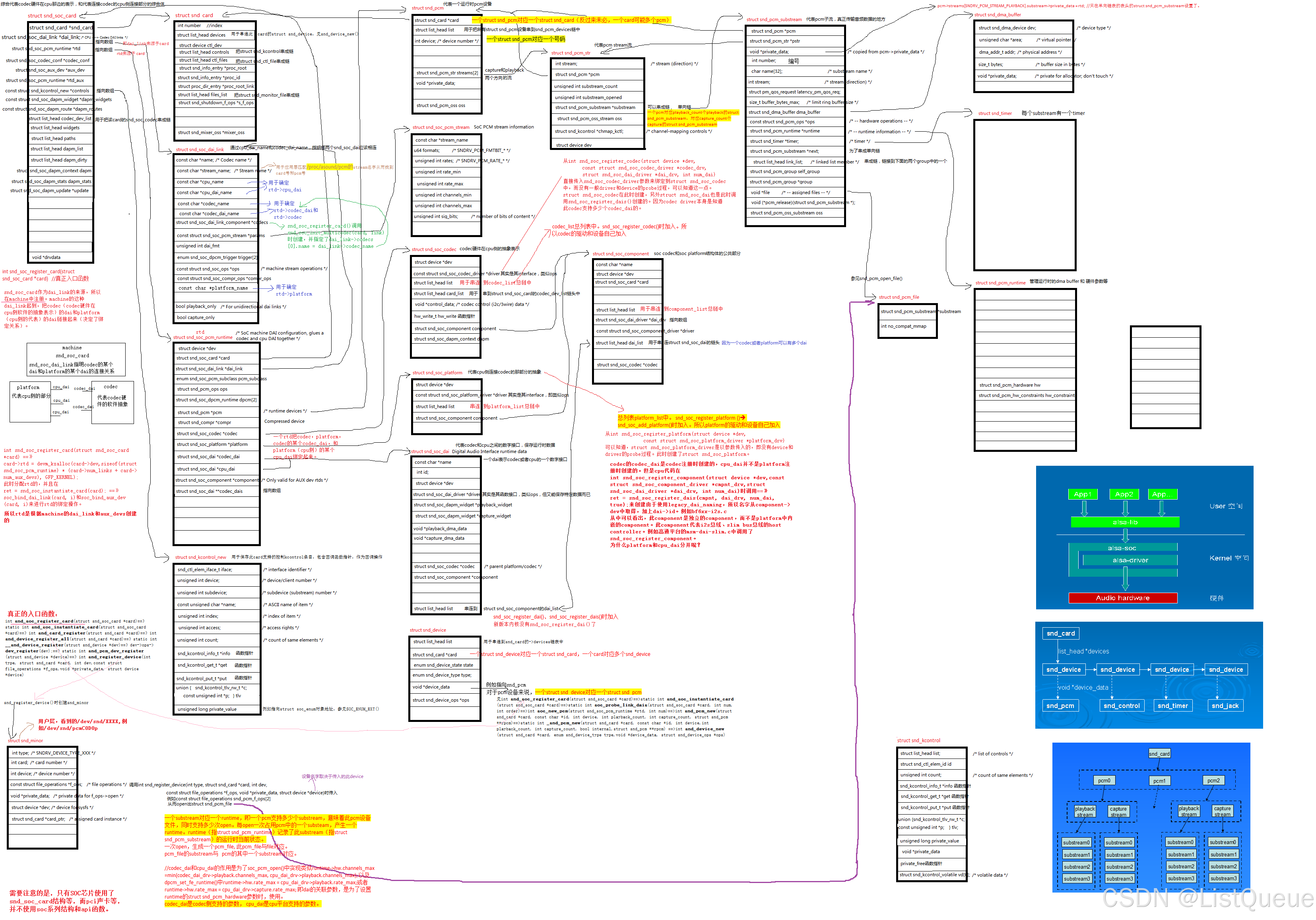snd_pcm_*(用于PCM数据流的控制),snd_mixer_*(用于音量和音频效果控制),snd_seq_*(用于 MIDI 数据流)。