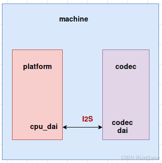 | Machine 类 | 作为 Codec 和 Platform 之间的桥梁 | 在 Codec 和 Platform 之间建立联系,指定具体的 Platform 和 Codec,实现这两者的协调工作。 | 每种机器(例如设备或 SoC)需要指定自己的 Machine 类,因此 Machine 类为硬件平台特定的实现。 |