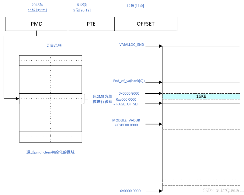 1、模块加载的范围应该是在MODULES_VADDR到MODULES_END之间,而MODULES_VADDR在文件arch/arm/include/asm/memory.h定义#define MODULES_VADDR (CONFIG_PAGE_OFFSET - SZ_8M),则该函数pmd_clear清理0~MODULES_VADDR所对应的一级页表项内容,所对应的地址为0x0 ~~~ bf000000。