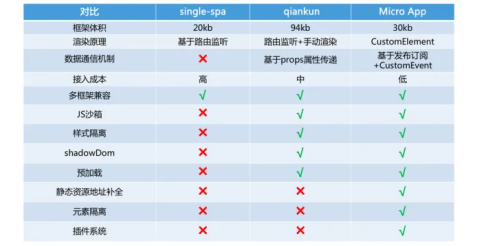 single-spa太过于基础,对原有项目的改造过多,成本太高; iframe在所有微前端方案中是最稳定的、上手难度最低的,但它有一些无法解决的问题,例如性能低、通信复杂、双滚动条、弹窗无法全局覆盖,它的成长性不高,只适合简单的页面渲染。剩下的只有qiankun、microApp和wujie-micro了。