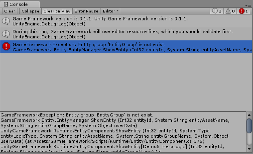 没错,报错是正常的,因为你们在调用ShowEntity的时候随便填了一个实体分组名称。