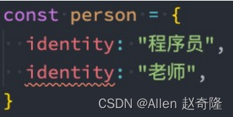 在ES5中,如果我们是不可以在对象中添加相同的属性名称的,比如下面的做法: