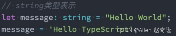 string类型是字符串类型,可以使用单引号或者双引号表示: