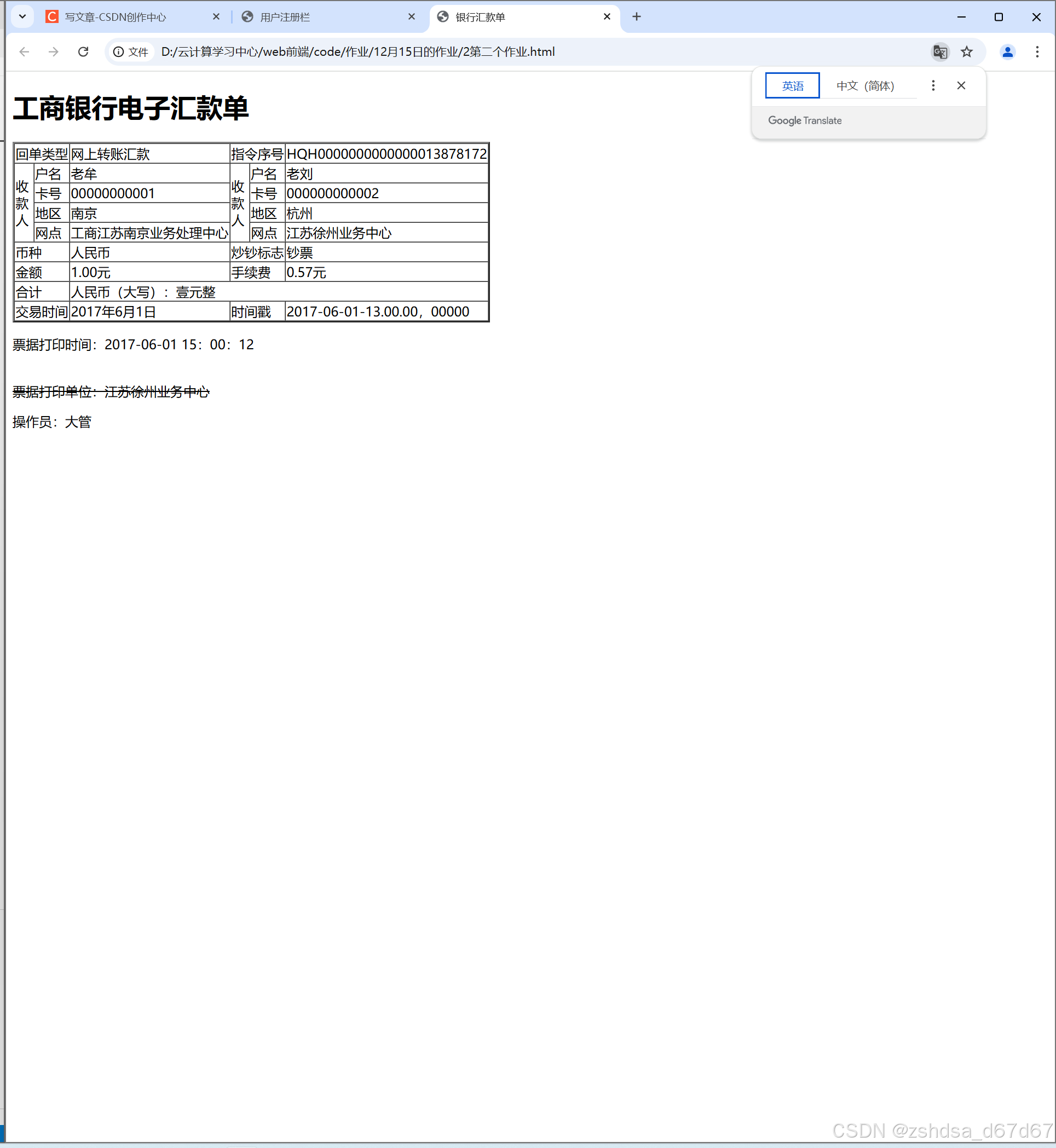 <tr><h1>工商银行电子汇款单</h1></tr>