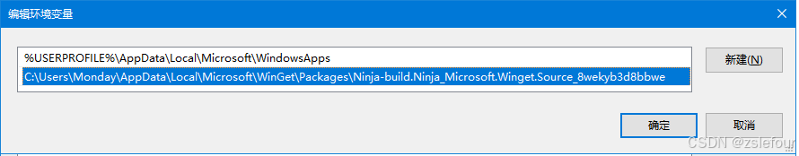 将软件安装了到路径:C:\Users\Monday\AppData\Local\Microsoft\WinGet\Packages\Ninja-build.Ninja_Microsoft.Winget.Source_8wekyb3d8bbwe 中,并在环境变量path中增加了该路径。