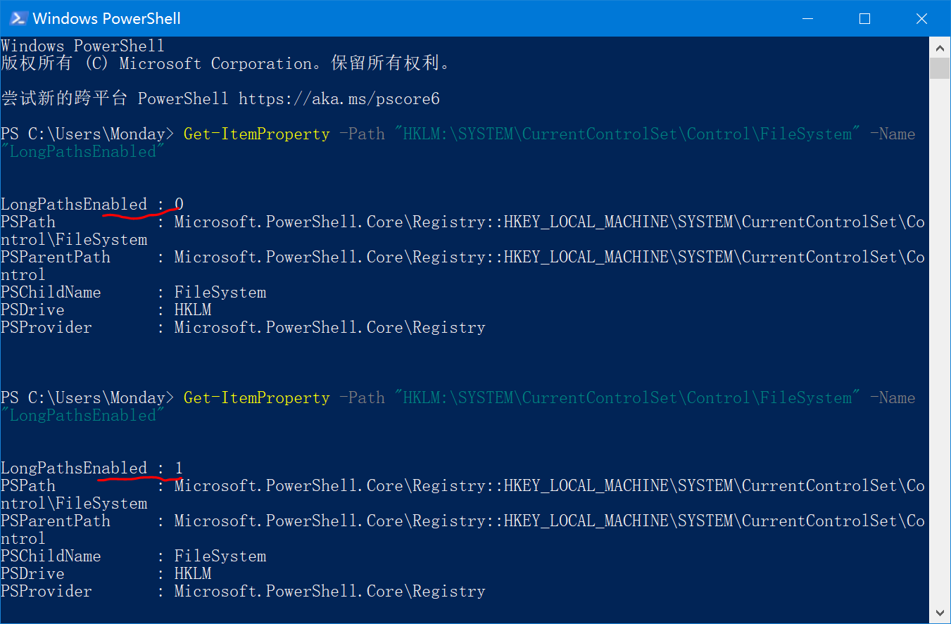 于是我就想,我是不是可以手工试试是否支持长路径呢?