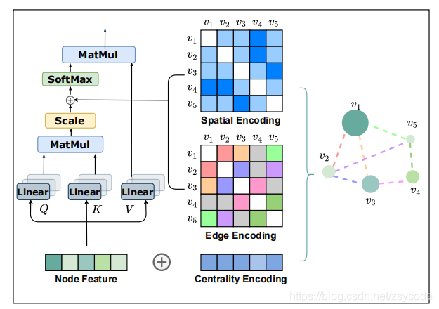 作者认为将Transformer应用到图上最关键问题是如何适合地将图的结构信息整合到模型之中。自注意力机制只计算了节点和其他节点的语义相似性,而没有考虑图上节点的结构信息和节点对之间的关系。
