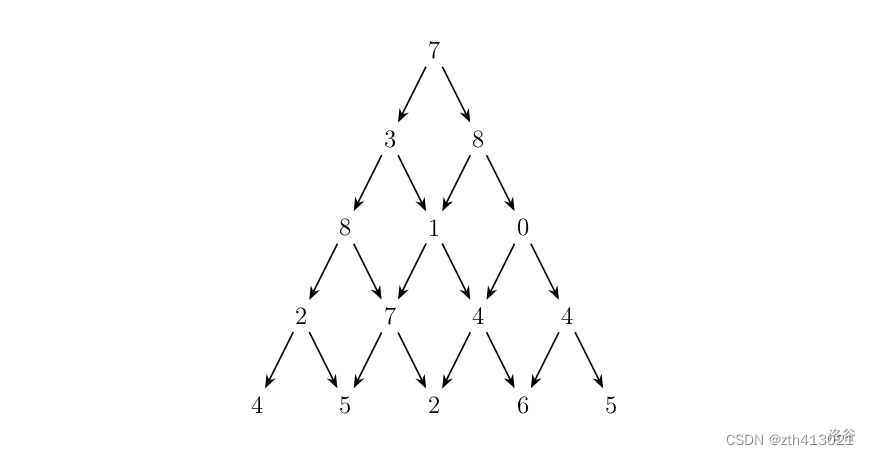 写一个程序来查找从最高点到底部任意处结束的路径,使路径经过数字的和最大。每一步可以走到左下方的点也可以到达右下方的点。