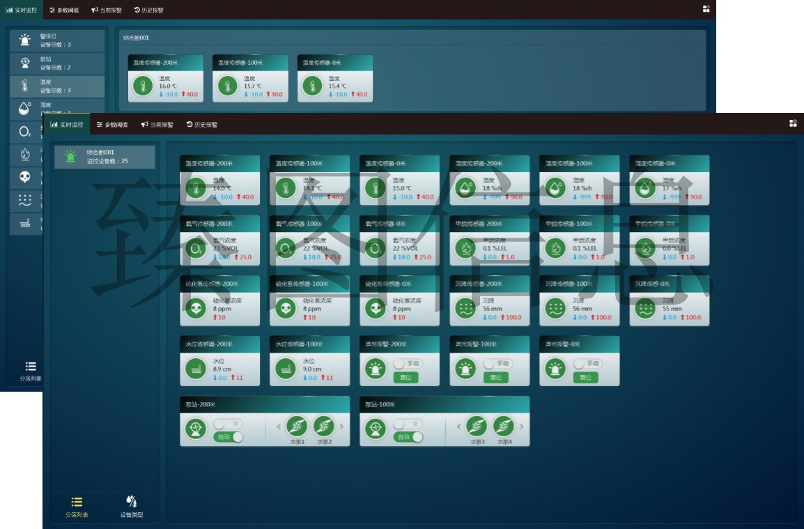 选用全景分层三维可视化地理信息系统及其多元化的二维在线地图从温度、风速、电力、排水、安防等好几个层面全方位操控管廊综合态势,形象化地展现管廊系统全景;