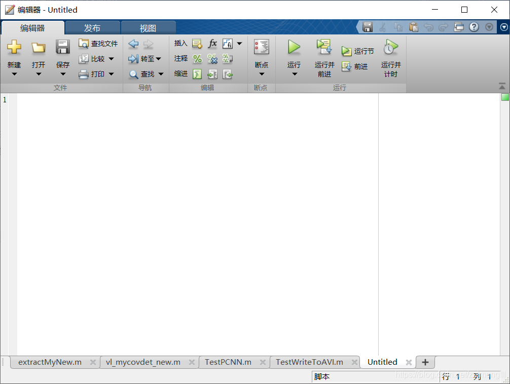 通过工具栏或菜单的“新建脚本(New Script)”或“打开(Open)”,可以打开脚本编辑器。