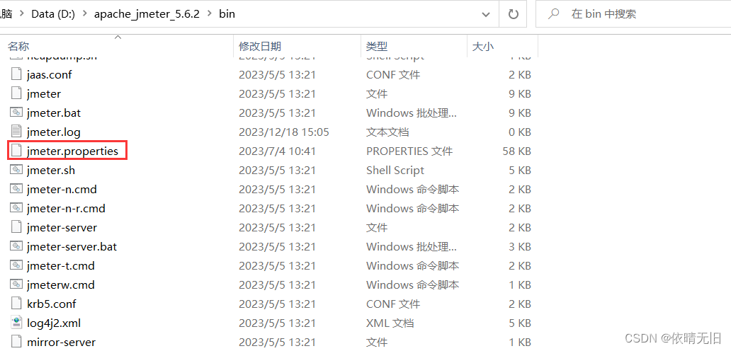 首先我们打开Jmeter所在的文件,进入bin目录,打开Jmeter.properties: