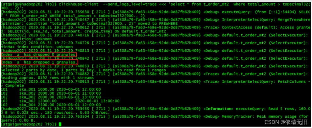 如果要是获取汇总值,还是需要使用 sum 进行聚合,这样效率会有一定的提高,但本 身 ClickHouse 是列式存储的,效率提升有限,不会特别明显。
