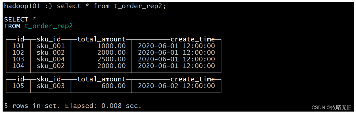 ) engine =ReplicatedMergeTree('/clickhouse0325/table/01/t_order_rep','rep_101')