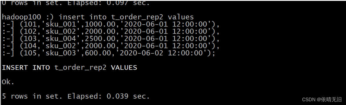 ➢ 在 hadoop100 上执行 insert 语句