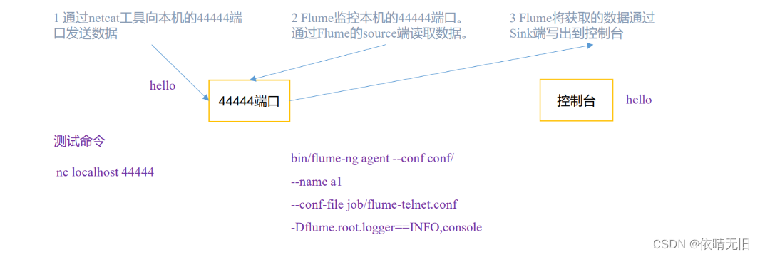 使用 Flume 监听一个端口,收集该端口数据,并打印到控制台。