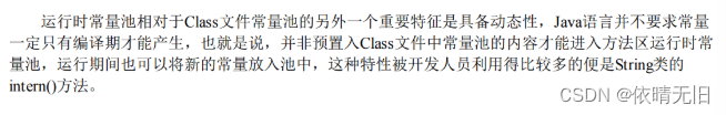 运行时常量池是方法区的一部分,Class文件中除了有类的版本、字段、方法、接口等描述信息外,还有一项信息是常量池表,用于存放编译器生成的各种字面量与符号引用,这部分内容将在类加载后存放到方法去的运行时常量池中。