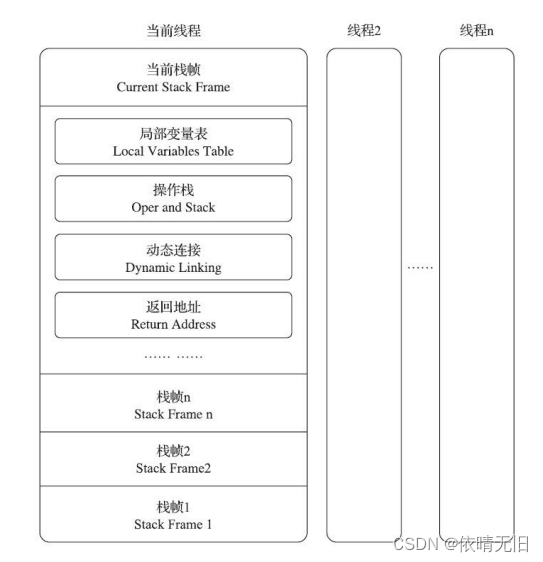 对于执行引擎来讲,在活动线程中,只有位于栈顶的方法才是运行的,只有位于栈顶的栈帧才是生效的,其被称为“当前栈帧”,与这个栈帧所关联的方法称为“当前方法”。