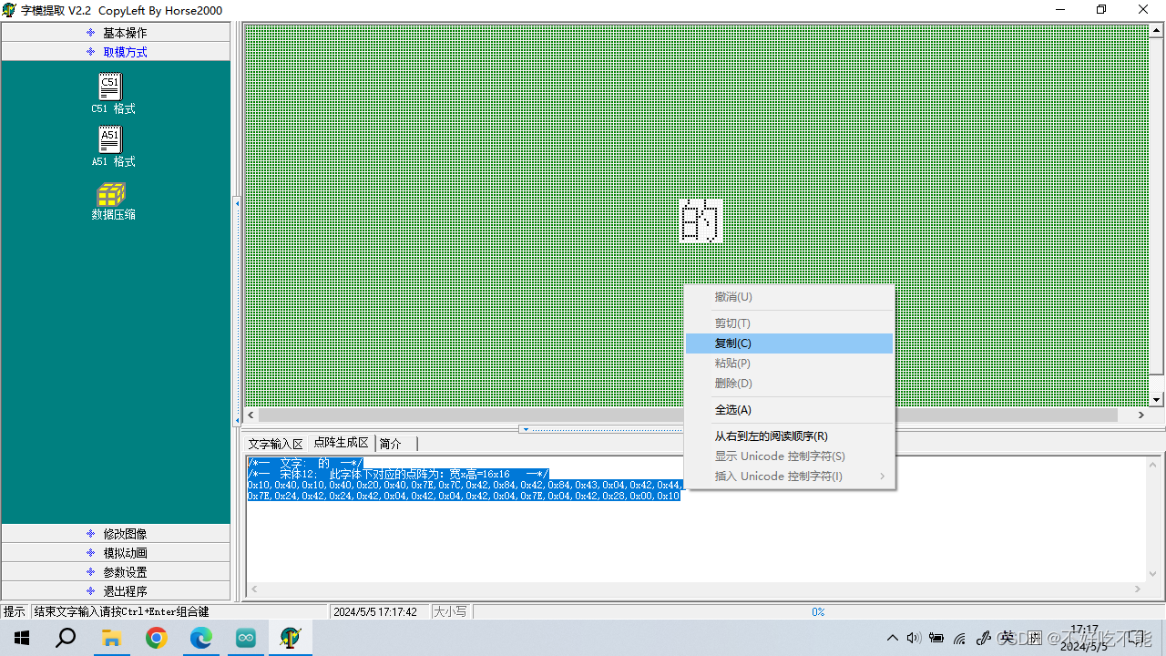 把生成的c51代码复制在自己的Arduino代码中即可: