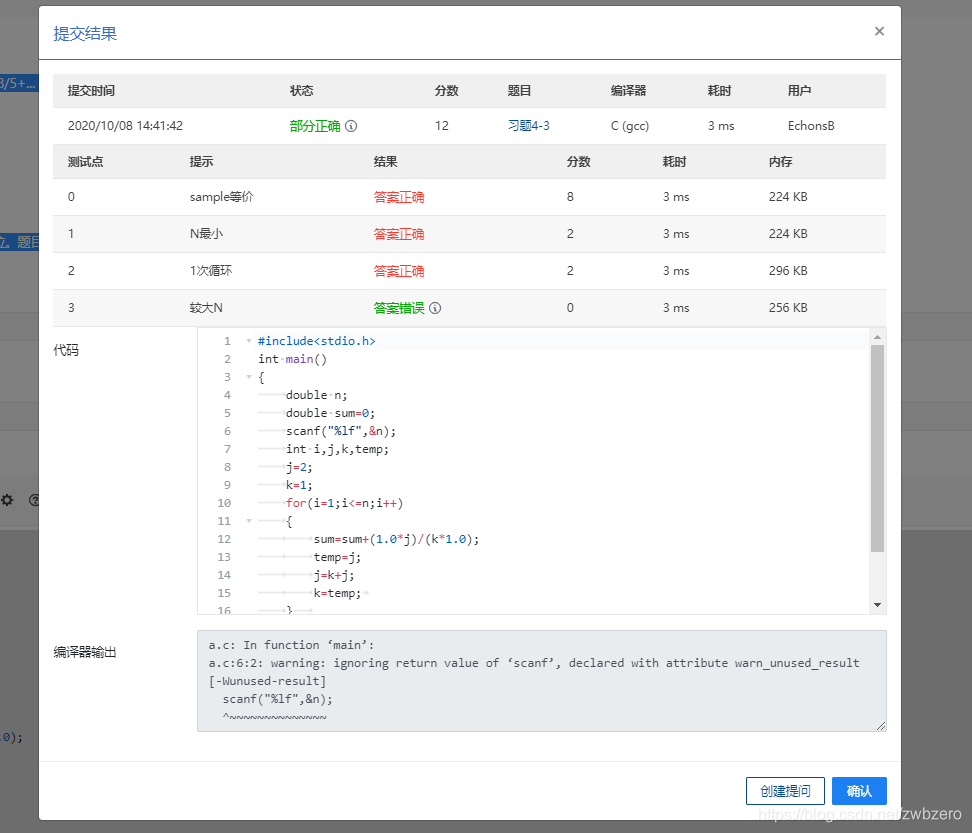 但是这个程序存在一个bug,就是当我提交时候,提示我较大N不行,然后我把输入的N,改为double类型的,提示依旧。 如果有哪位同学知道原因,可以留言交流一下。