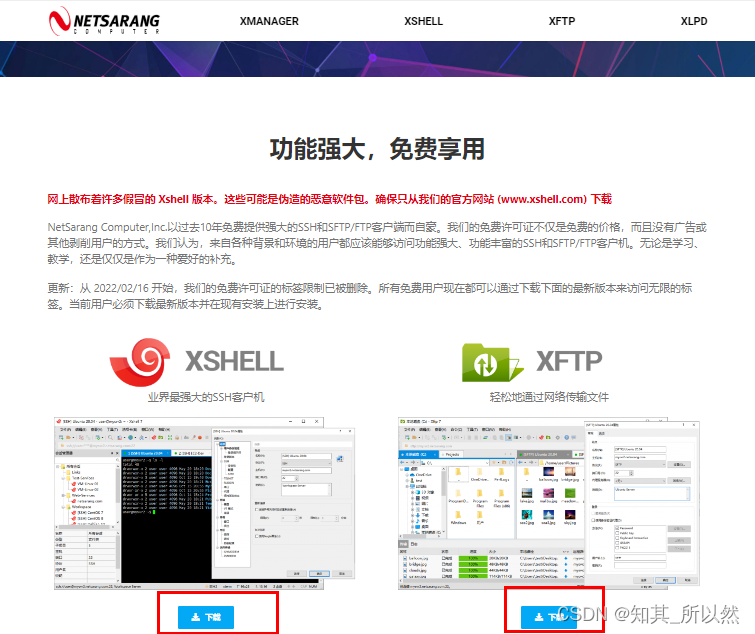 进入上面网址会出现以下页面,就可以下载 Xshell 和 Xftp 了。