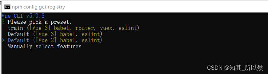 npm install -g @vue/cli@5.0.8 # 仅第一次安装,安装完成后电脑上就可以使用vue命令