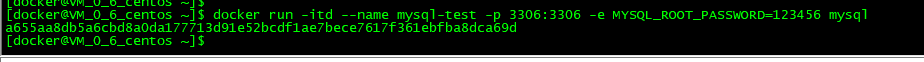 docker run -itd --name mysql-test -p 3306:3306 -e MYSQL_ROOT_PASSWORD=123456 mysql