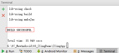 B 在 dependencies 中加入 compile(name:lib-zxing-release', ext:'aar')