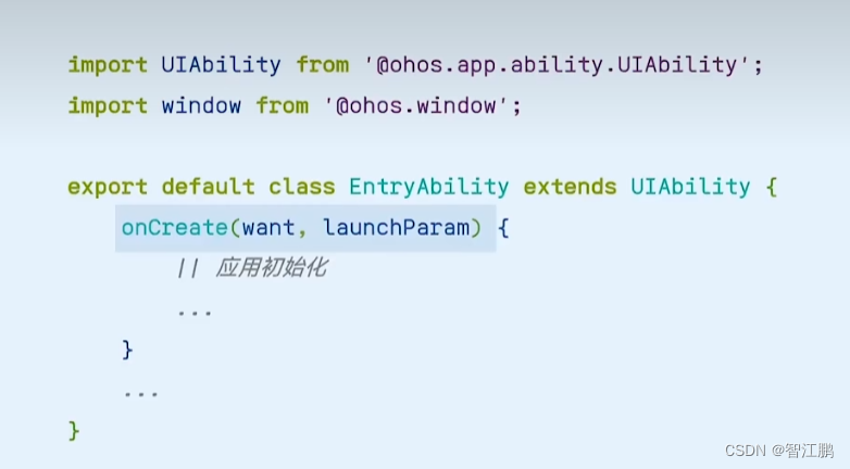 onCreate(want: Want, launchParam: AbilityConstant.LaunchParam): void {