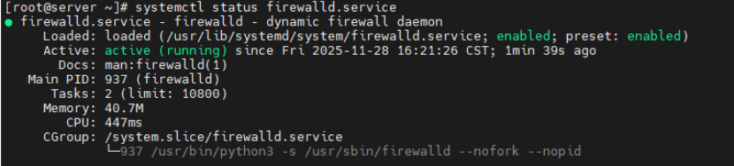 - 通过命令systemctl status firewalld.service查看当前防火墙的状态