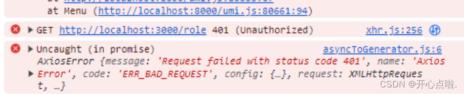 但是需要注意的是,当我们写完JWT登录后,可能在其他页面上请求数据API会报401的错误。这通常表示未经授权或身份验证失败。这种错误通常与身份验证和访问权限相关。