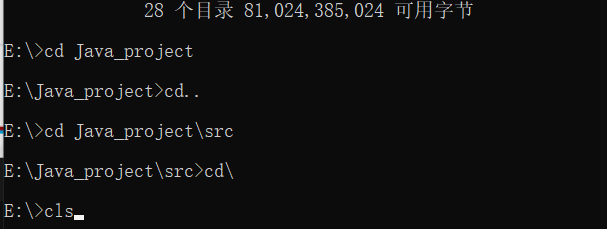 cd 目录1\目录2\...:进入多级目录;例:cd Java_project\scr