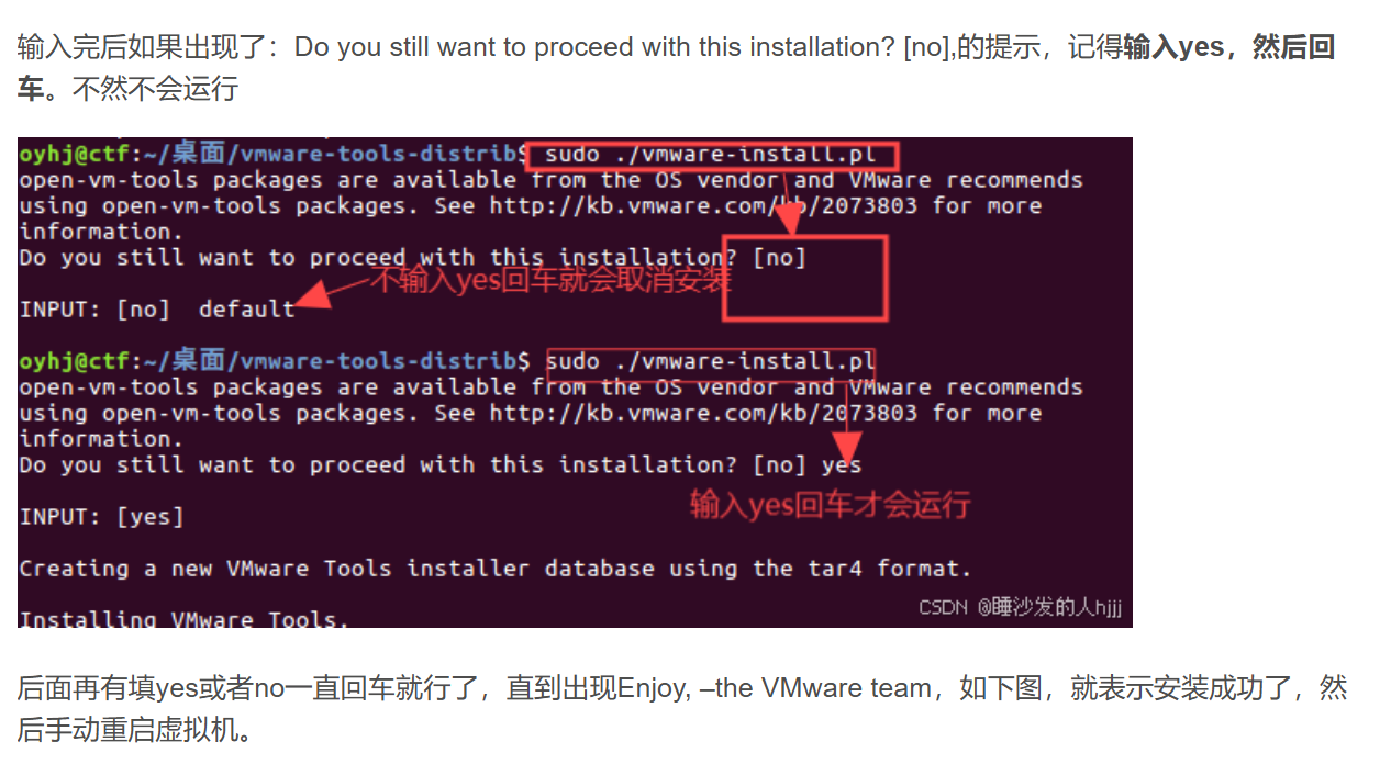然后输入 cd vmware-tools-distrib/,按步骤继续输入:sudo ./vmware-install.pl