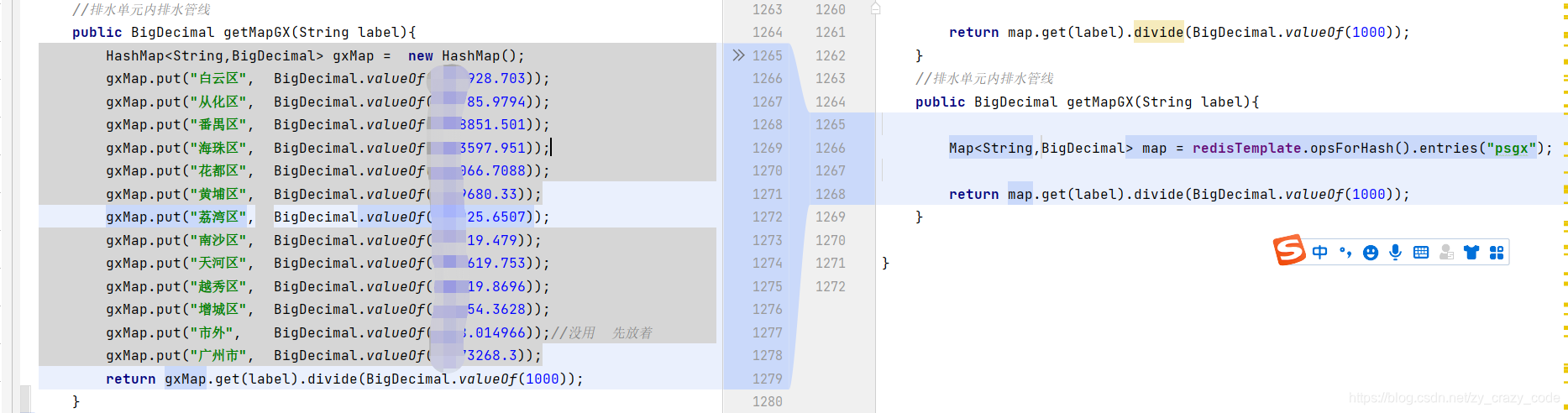 Map<String,BigDecimal> map = redisTemplate.opsForHash().entries("psgx");