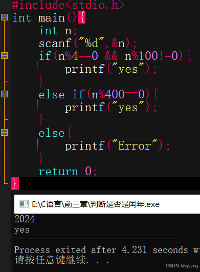 if(n%4==0 && n%100!=0){ //先判断能被4整除,但不能被100整除