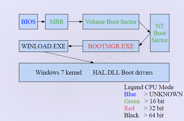 1:首先,MBR加载NT Boot Sector,NT boot Sector可以读取FAT32和NTFS,它将读取在 system32或者system32/boot目录下的BOOTMGR.exe函数。