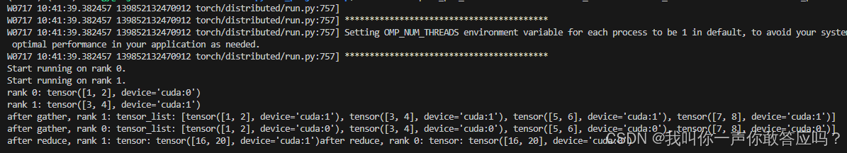 print(f"after reduce, rank {rank}: tensor: {tensor}")