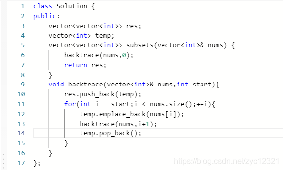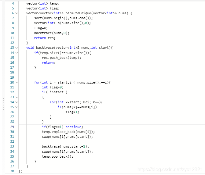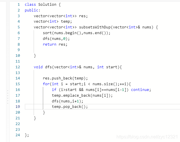 解答:和上题一样,多了个判断:if (i>start && nums[i]==nums[i-1]) continue;