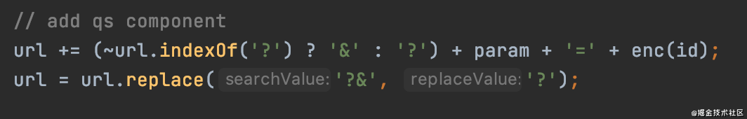 url += (~url.indexOf('?') ? '&' : '?') + paramsString;