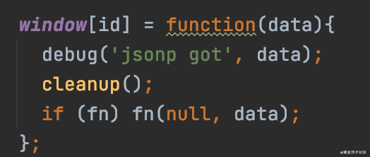 将回调函数挂载到全局,返回数据后调用cleanup函数清理全局页面中的代码,并将数据返回给传入的fn函数