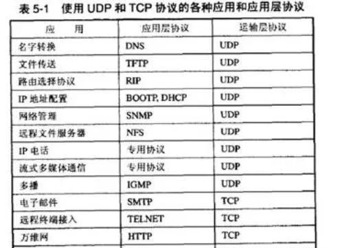 应用层和应用层协议主要使用的运输层协议(UDP或TCP)如下表所示