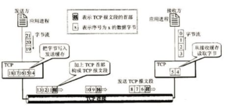 TCP和UDP在发送报文时所采用的方式完全不同,TCP对应用进程一次把多长的报文发送到TCP的缓存中是不关心的。TCP根据对方给出的窗口值和当前网络的拥塞程度来决定一个报文段应包含多少个字节(UDP发送的报文长度是应用进程给出的)。如果应用进程传送到TCP缓存的数据块太长,TCP就可以把它划分短一些再传送。如果应用进程一次只发来一个字节,TCP也可以等待积累有足够多的字节后再构成报文段发送出去。